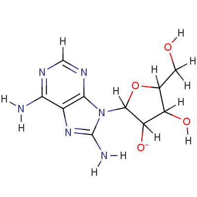 InChI=1/C10H13N6O4/c11-7-4-8(14-2-13-7)16(10(12)15-4)9-6(19)5(18)3(1-17)20-9/h2-3,5-6,9,17-18H,1H2,(H2,12,15)(H2,11,13,14)/q-1/t3-,5+,6-,9-/m0/s1